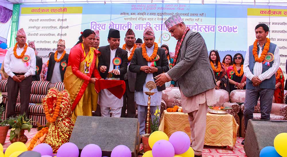 भाषा, साहित्य र संस्कृतिको संरक्षण गर्ने उद्देश्यले सुदूरपश्चिमाञ्चल साहित्य समाजले तिन दिनसम्मकाे विश्व नेपाली नारी साहित्य महोत्सवको आयोजना गरेको हो।