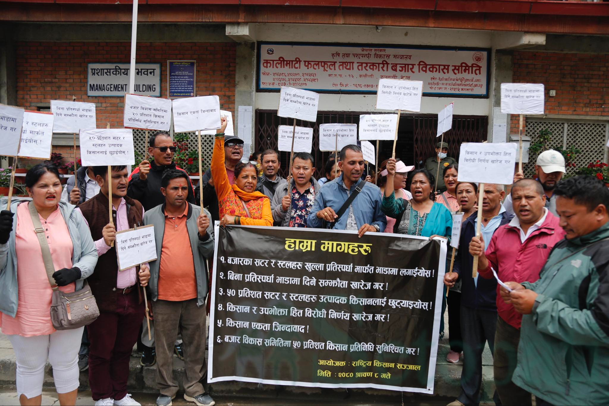 कालीमाटीमा किसानहरूकाे धर्ना, बजारका ५० प्रतिशत सटर र स्टल किसानले पाउनुपर्ने माग