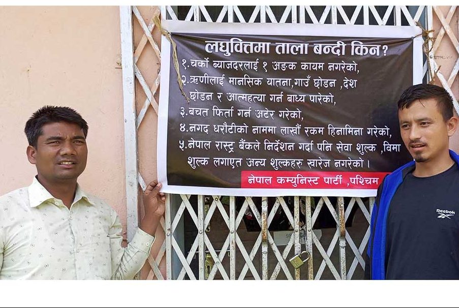 अछाममा रहेकाे छिमेक र एनएमबी लघुवित्त वित्तीय संस्थाको कार्यालयमा आज तालाबन्दी