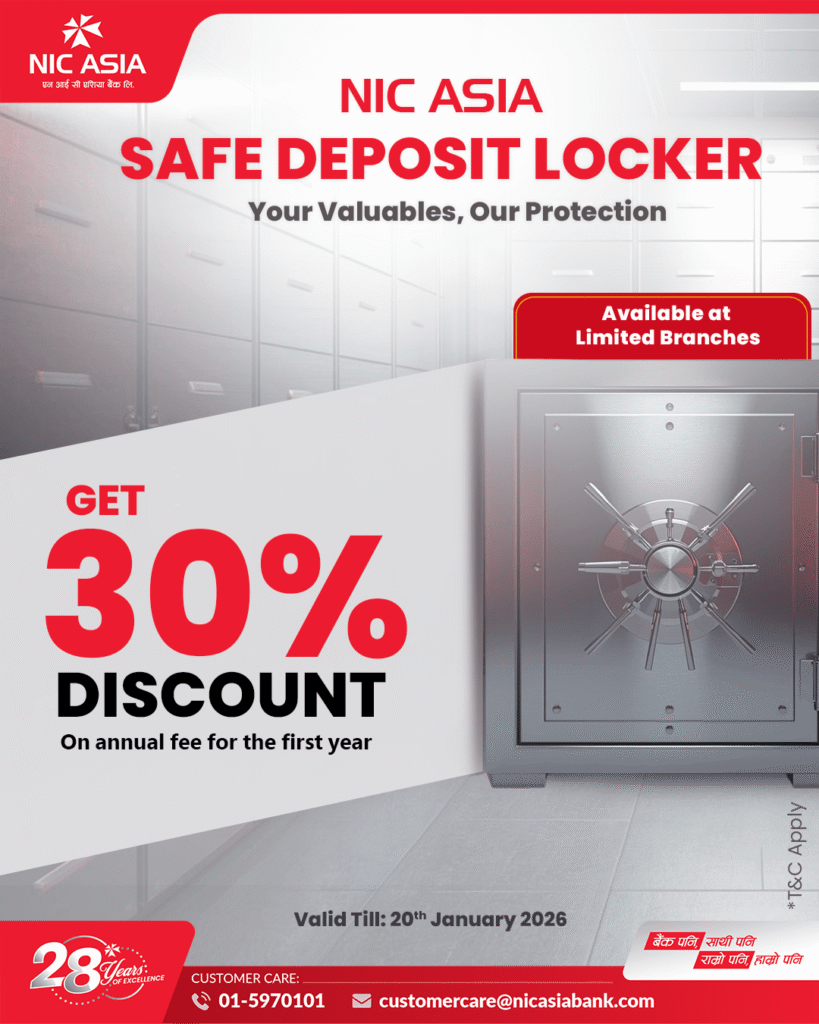 काठमाडौं- एनआईसी एशिया बैंकको लकर सेवामा ग्राहकहरुको ३० प्रतिशत छुट पाउने भएका छन् ।