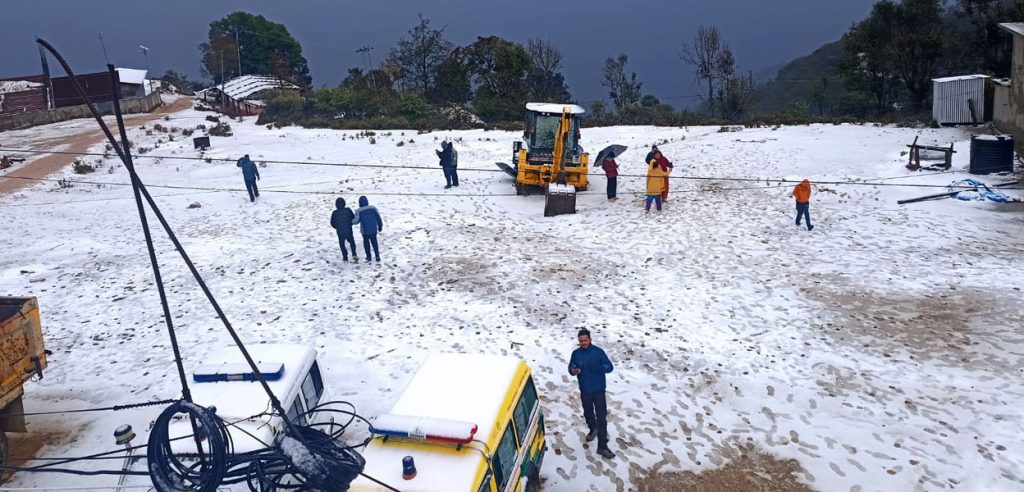 हिमपातपछि जुम्लाका डाँडाकाँडा अहिले सेताम्मे देखिन्छन् । लामो समयपछि हिउँ परेकाले स्थानीय युवायुवती हिउँमा रमाइरहेका छन् । यसैगरी समूह–समूह बनी फोटो खिच्ने र भिडियो खिच्नेहरू पनि त्यतिकै भेटिन्छन् ।
