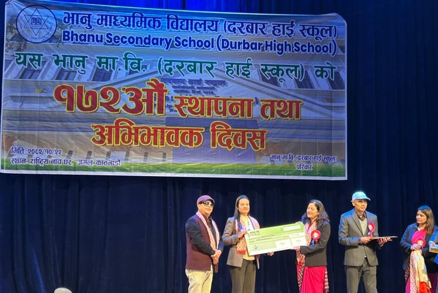 काठमाडौं । कामना सेवा विकास बैंकले आफ्नो सामाजिक उत्तरदायित्व कार्यक्रम अन्तर्गत रानीपोखरी स्थित भानु माध्यमिक विद्यालय (दरबार हाई स्कूल) को १७२ औं स्थापना दिवस तथा अभिभावक दिवसका अवसरमा विद्यालयमा अध्ययनरत गरिब तथा विपन्न वर्गका विद्यार्थीहरुलाई छात्रवृत्ति प्रदान गरेको छ ।