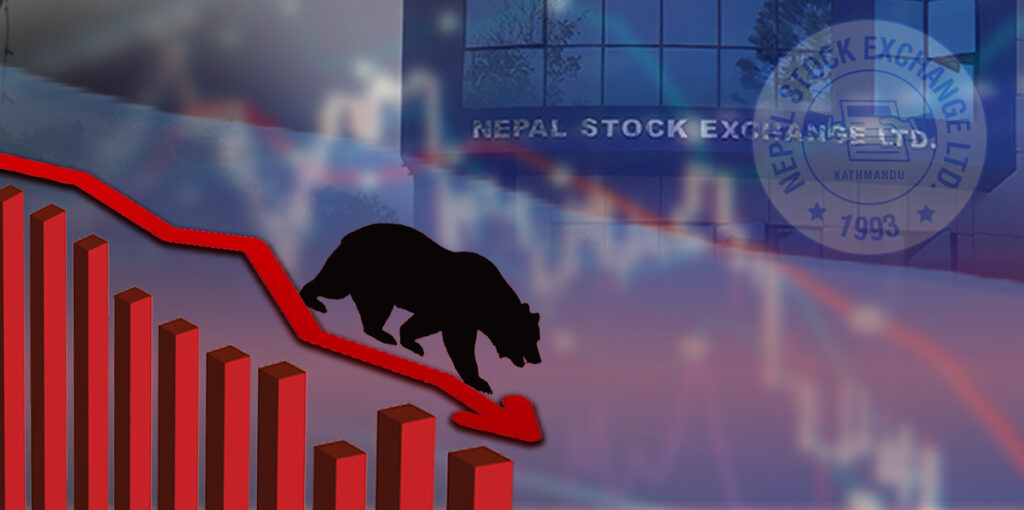 काठमाडौं । नेपाल स्टक एक्सचेञ्ज (नेप्से) परिसूचकमा उच्च अंकको गिरावट देखिएको छ । आइतबार नेप्से परिसूचक २७ दशमलव ५९ अंकले घटेर दुई हजार ६१४ दशमलव ५५ को बिन्दुमा कायम भएको छ । यो एक दशमलव शून्य चार प्रतिशतको गिरावट हो ।