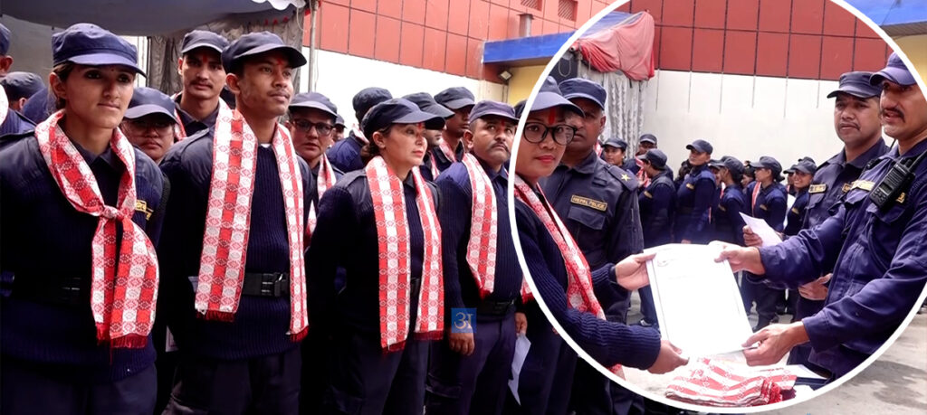 काठमाडौं : फागुन २१ गते सम्पन्न प्रतिनिधिसभा सदस्य निर्वाचनका लागि परिचालन गरिएका निर्वाचन प्रहरीको बिहीबार बिदाइ गरिएको छ । निर्वाचन सुरक्षाका लागि भर्ना गरिएका निर्वाचन प्रहरीको ४० दिनको सेवा पूरा भएपछि बिहीबार विदाइ गरिएको हो ।विदाइ कार्यक्रममा निर्वाचन प्रहरीलाई धन्यवाद पत्रसहित सम्मान गरिएको थियो ।