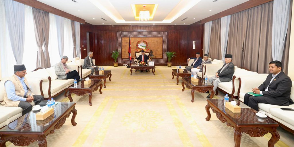 संसद् अवरोध अन्त्य गर्ने विषयमा तीन दलका शीर्ष नेताहरुबीच प्रधानमन्त्रीको सरकारी निवास बालुवाटारमा आज (मंगलबार) बसेको बैठकमा प्रधानमन्त्री पुष्पकमल दाहाल ‘प्रचण्ड’, एमाले अध्यक्ष केपी शर्मा ओली, नेपाली कांग्रेसका सभापति शेरबहादुर देउवा, सभामुख देवराज घिमिरे र तीन दलका प्रमुख सचेतहरु सहभागी थिए ।