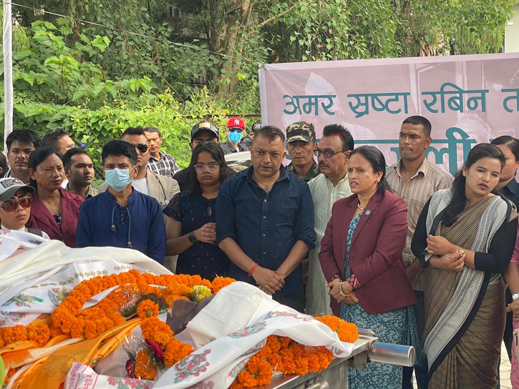 दिवंगत गायक तथा अभिनेता रविन तामाङप्रति मन्त्री, नेता, शुभेच्छुक र कलाकर्मीले अन्तिम श्रद्धाञ्जली व्यक्त गरेका छन् ।
