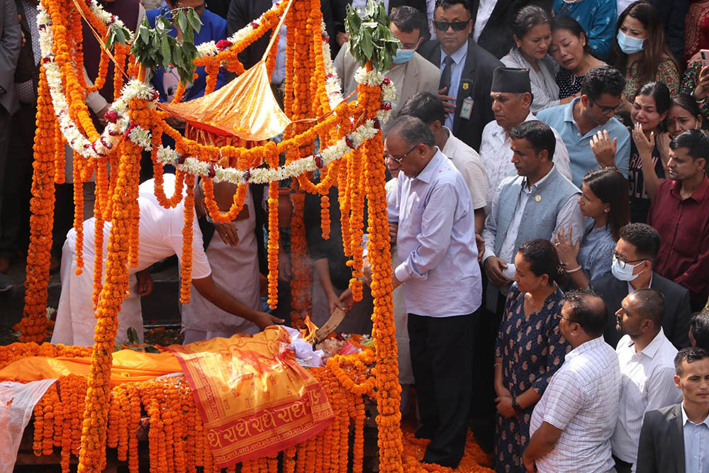 बुधबार अपराह्न पशुपति आर्यघाटमा उनको राजकीय सम्मानसहित अन्त्येष्टि गरिएको हो । पत्नी सितालाइ पुष्पकमल दाहाल प्रचण्ड र छोरीहरू रेणु र गंगाले दागबत्ती दिए ।