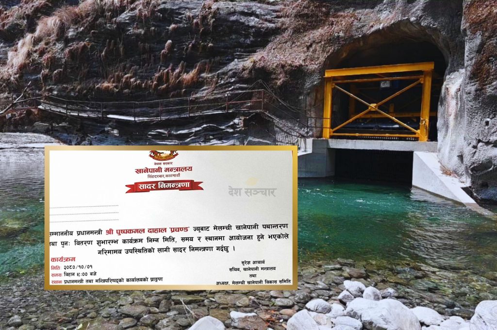 तर २०७८ मा असारमा मेलम्चीमा आएको बाढीका कारण ठूलो क्षति हुँदा मेलम्चीको पानीसमेत अवरुद्ध भएको थियो। त्यसको साढे दुई वर्षपछि काठमाडौंमा पुनः पानी ल्याउन लाग्दा खानेपानी मन्त्रालयले निम्ता कार्ड नै तयार गरेको हो।