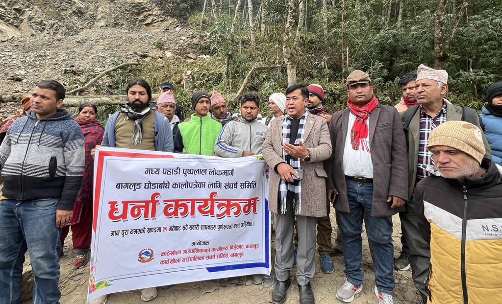 २१ माघ, पोखरा । ट्रयाक खुलेको २५ वर्षसम्म सडकको अवस्था नसुध्रिएपछि बागलुङ काठेखोला गाउँपालिकाका जनप्रतिनिधि नै आन्दोलमा उत्रिएका छन् ।