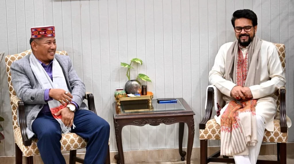 काठमाडौँ । युवा तथा खेलकुद मन्त्री डिगबहादुर लिम्बु र भारतका सूचना, प्रसारण, युवा मामिला तथा खेलकुद मन्त्री अनुराग ठाकुरबिच भेटवार्ता भएको छ ।