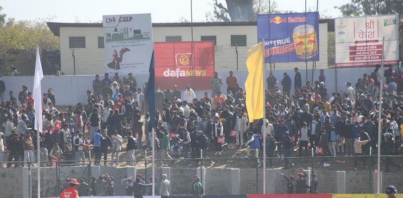 ‘सन्दीप हाम्रो शान हुन्, हामीलाई सन्दीप चाहियो’ भन्दै दर्शक दिर्घाबाट हुटिङ भएपछि प्रहरीले हस्तक्षेप गर्यो । केहि बेर स्थिति तनावग्रस्त नै भयो । प्रहरीले दर्शकले बोकेका केही ब्यानर खोस्नुको साथै दुई जनालाई नियन्त्रणमा समेत लियो । त्यस्तै मैदान भित्र रहेका खेलाडिले पनि खेल छाडेर केहि समय दर्शकहरुको गतिविधि नियाल्न थालेका थिए ।