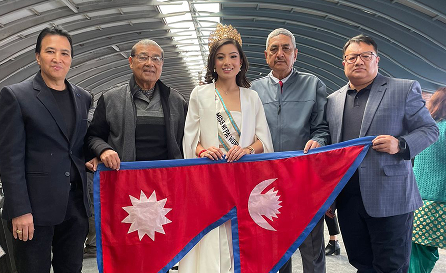 काठमाडौं । ७१ औं मिस वर्ल्डमा सहभागी हुन मिस नेपाल वर्ल्ड २०२२ प्रियंकारानी जोशी आइतबार दिल्लीतर्फ प्रस्थान गरेकी छन् । उनलाई त्रिभुवन अन्तर्राष्ट्रिय विमानस्थलमा द हिडन ट्रेजरका पदाधिकारीले राष्ट्रिय झण्डा प्रदान गर्दै बिदाई गरे ।